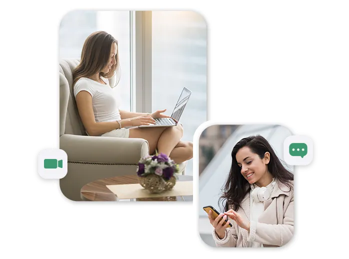 Communicate with your therapist through live sessions, messaging, or both.